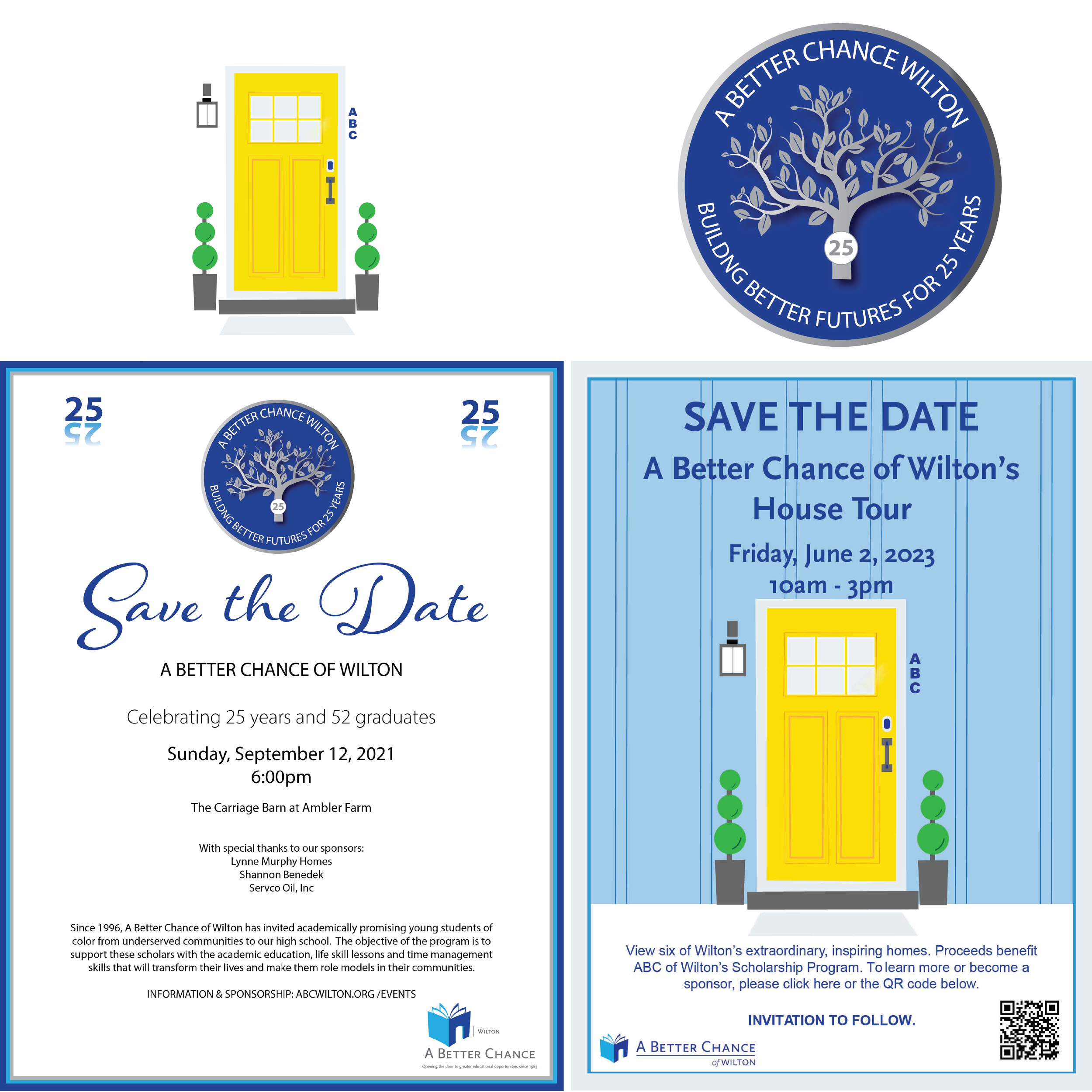 Challenge: A Better Chance Wilton needed branding for key fundraising events, including their 25-year gala and annual open house. The goal was to make each event feel special, recognisable, and aligned with the organisation’s mission.